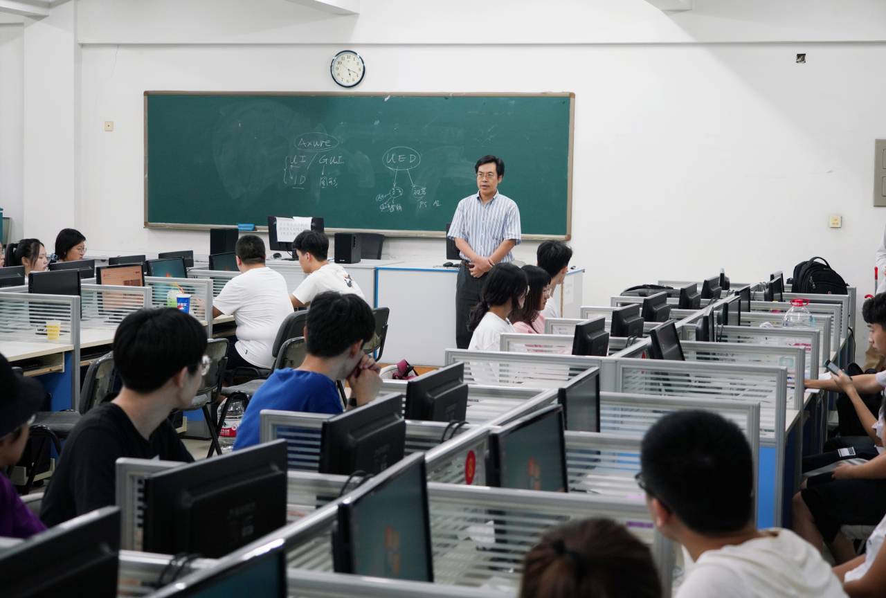 赛前,赵永强副校长看望不分昼夜、刻苦钻研的同学们
