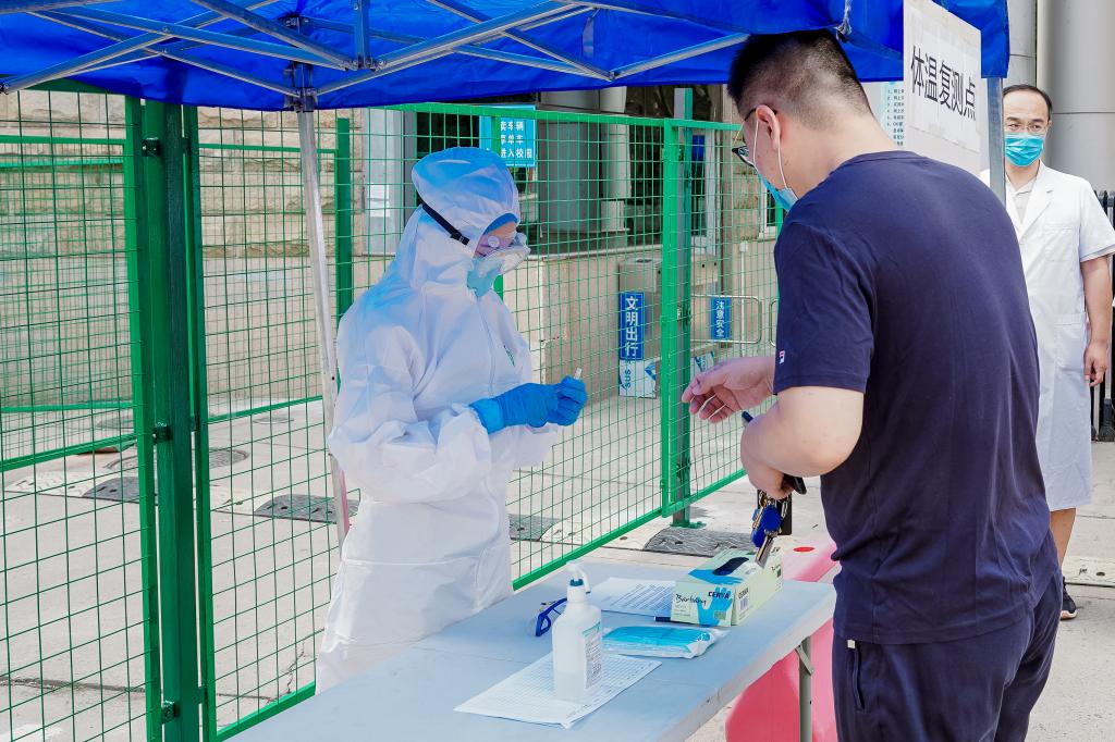 体温异常或非健康绿码学生前往校北门体温复测点做进一步检测登记