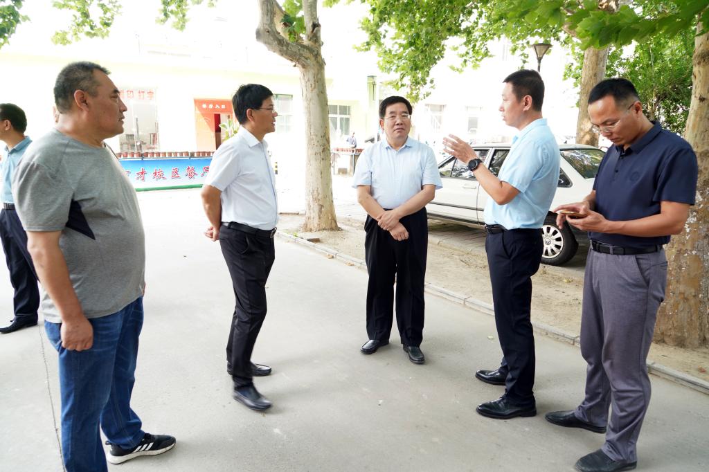 模拟演练结束后,王凤鸣校长、冯鸿雁副校长视察育才校区开学准备情况