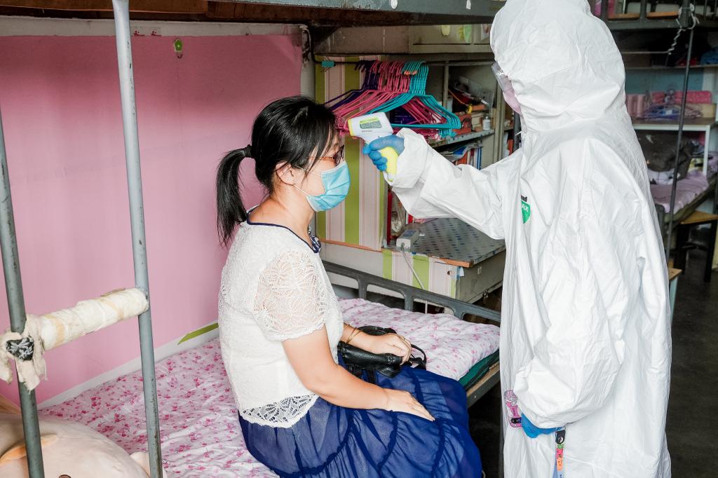 值班人员做好自我防护,立即到宿舍给学生复测体温,询问学生接触史及行动轨迹,做进一步应急处置