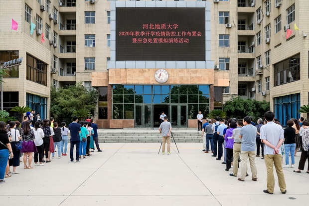 在主楼前广场举行秋季开学疫情防控工作布置会