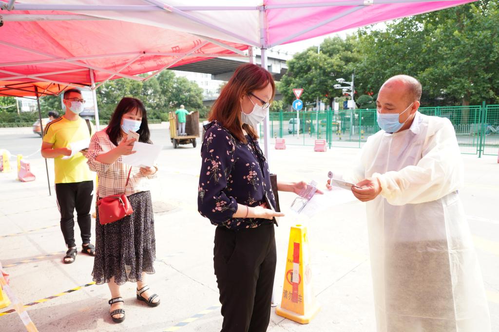 测温异常或非健康绿码教职工到校北门体温复测点做进一步检测登记