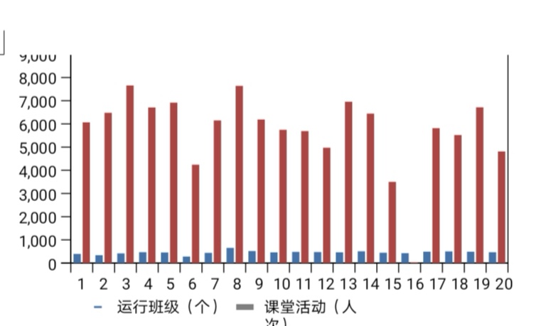 图6显示了前4个教学周中,各天的课堂活动开展情况。课堂活动的形式包括:签到、投票、抢答、分组任务、测验等等。4周以来,运行班级总数为9168个,共开展课堂活动114234个。平均每名教师每周开展课堂活动816个,丰富多样的课堂活动有利于强化课堂纪律,调动学生课堂关注度和参与的积极性、提升课堂教学效果。