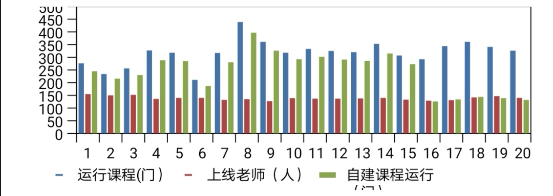 图2是开课一月来,教师们上传资源的情况分布图。二十天中,教师们共上传文本、图片、音视频等各种类型的资源共325759个,平均每人每天上传约116个各类资源,反映出教师们为线上教学做了大量的准备工作。