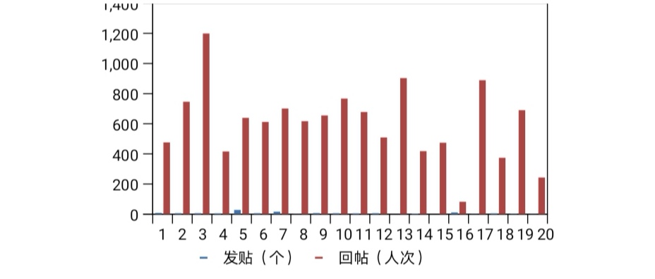 图7显示,学生回帖数远大于教师发贴数,充分说明学生更喜欢通过发回帖这种方式参与课程讨论和学习。为此,建议教师多采用发帖方式,贴近学生的学习习惯,以促进学生探究式讨论、调动学生学习的积极性和主动性。从图8来看,教师更愿意采取讨论方式答疑解惑。