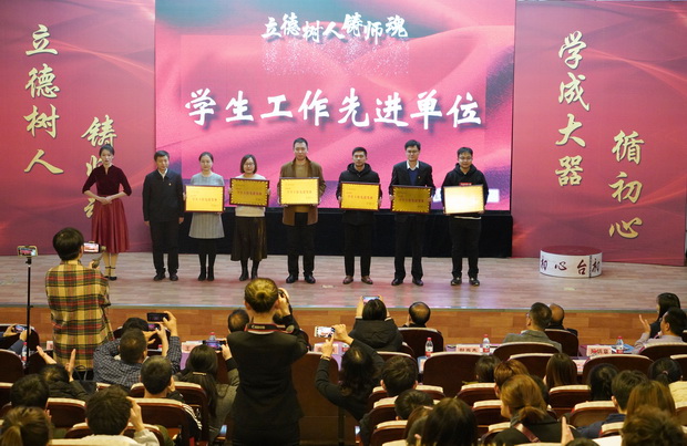 2020年1月2日下午,bat365官网在春秋讲堂召开了2019年学生工作表彰大会。校党委副书记南振兴、副校长王滨出席大会并为受表彰教师颁奖。