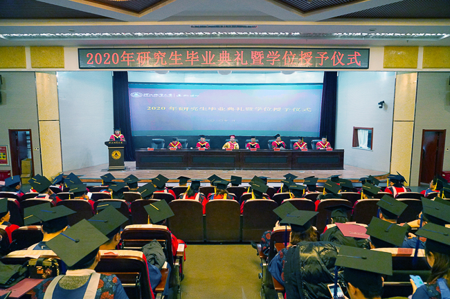 1月5日,bat365官网2020年研究生毕业典礼暨学位授予仪式在春秋讲堂隆重举行。校领导、校学位评定委员会全体委员、研究生指导教师、2020年毕业研究生和部分毕业研究生亲友参加了典礼。典礼由副校长闫军印主持。