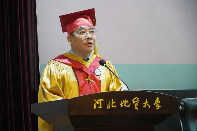 上午9时,典礼在庄严的国歌声中拉开帷幕。校长王凤鸣发表致辞,向圆满完成学业的264名研究生表示热烈的祝贺,向精心培育学生成长的导师、亲友以及辛勤耕耘的广大教职员工致以崇高的敬意,向所有关心支持bat365官网研究生教育发展的广大校友和社会各界朋友们表示衷心的感谢。他说, 同学们用实际行动秉承了地大“达观博物”的校训、弘扬了“仰山慕水”的文化,用自己的奋斗和成绩在回馈母校、感恩师友,用自己的青春年华在战国红的地大底色上描绘了最鲜亮的笔触,同学们永远是学校的荣耀、导师的自豪、亲友的骄傲!王校长深情寄语毕业生,希望同学们能做一名志存高远、胸怀天下的人;希望同学们能做一名善于坚持、不负初心的人;希望同学们能做一名德才兼备、持守正道的人。