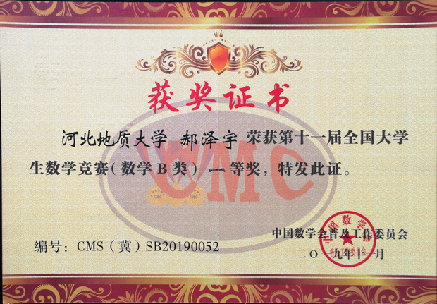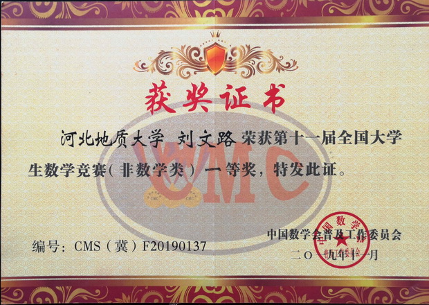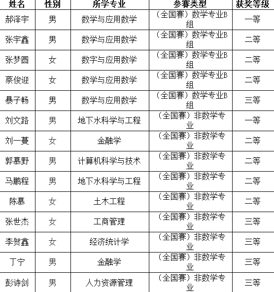 近日,2019年(第十一届)全国大学生数学竞赛(初赛)成绩公布,bat365官网取得优异成绩。共有14人获奖,其中获得数学专业组和非专业组一等奖各1人。(具体获奖信息详见附件)。