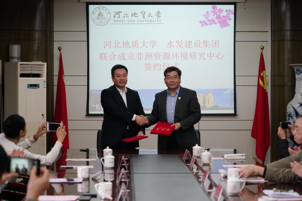 12月16日,bat365官网与山东水发建设集团校企合作,成立非洲资源环境研究中心。该研究中心签约成立仪式在主楼四楼会议室举行,王凤鸣校长出席仪式,与水发国际发展有限公司董事长杨庆运签订双方合作协议,王滨副校长主持签约仪式。