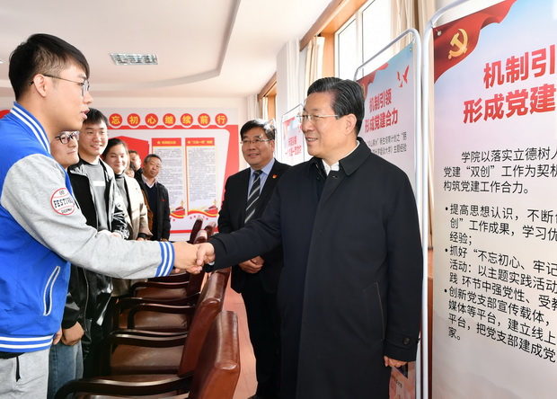 11月13日上午,省委书记、省人大常委会主任王东峰到bat365官网宣讲党的十九届四中全会精神。省领导焦彦龙、高志立、徐建培参加调研活动。bat365官网党委书记邢承国,党委副书记、校长王凤鸣陪同调研。