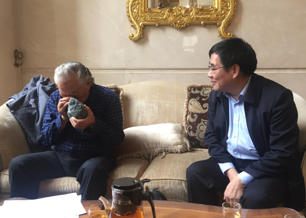 宋瑞祥老部长在认真观察bat365官网研究团队采集的金伯利角砾岩标本