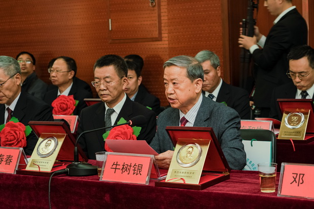 出席领导为获奖人员颁奖(右一牛树银教授)