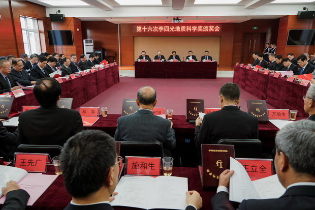 10月25日,第十六次李四光地质科学奖颁奖会在北京举行。自然资源部党组书记、部长、国家自然资源总督察,李四光地质科学奖委员会主任陆昊出席颁奖大会议并讲话。自然资源部党组成员、副部长凌明月,李四光地质科学奖委员会副主任侯启军,国家自然基金委员会副主任、中国科学院院士侯增谦及自然资源部各司相关领导一同出席颁奖会。