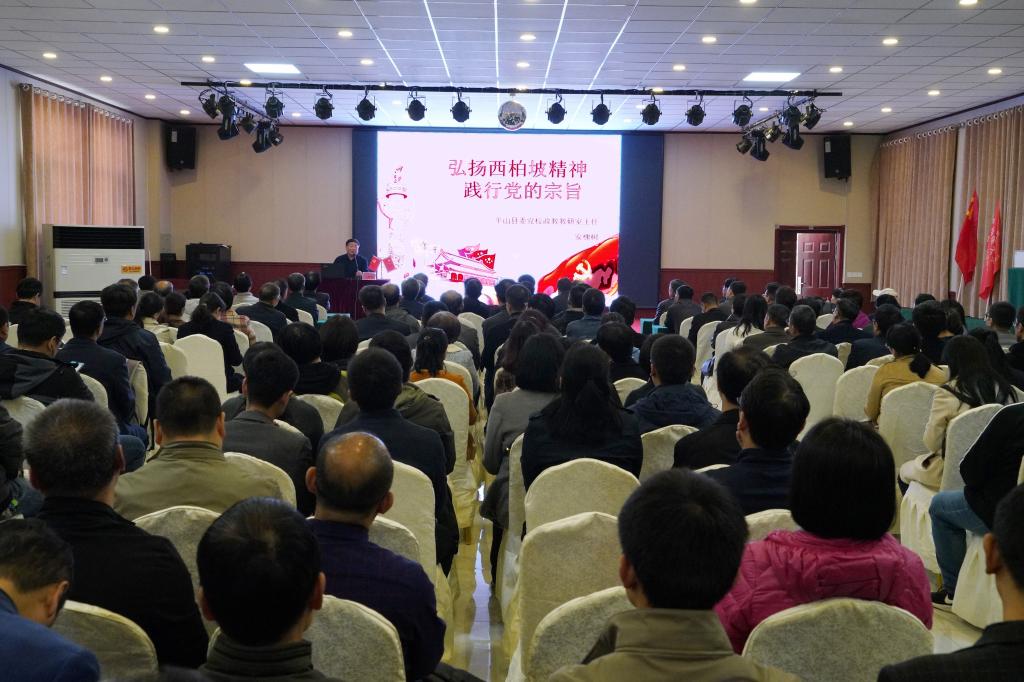 全体人员聆听西柏坡精神专题报告