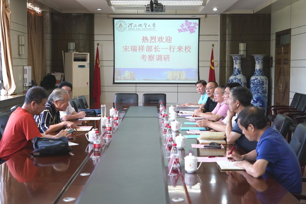 王凤鸣校长代表学校对宋瑞祥部长一行的到访表示欢迎,简要介绍了学校的基本情况,表示积极落实老部长的倡议,将充分调研,做好疑难地质学/疑难矿种发现研究中心的筹建工作。