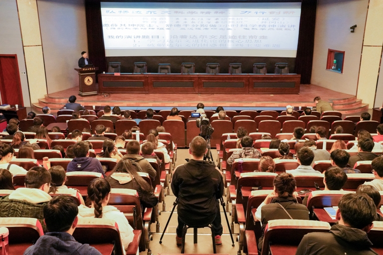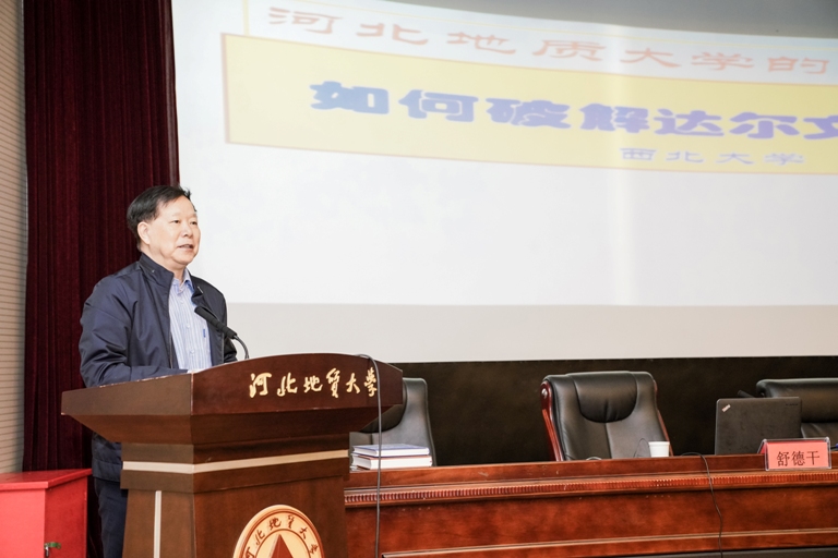 报告中,舒德干院士结合自己的求学经历,带领大家沿着达尔文足迹探访加拉帕戈斯群岛,并以加拉帕戈斯群岛物种多样性研究为例,引出达尔文进化论思想及其十大猜想,提出生物学家的核心任务是构建各级各类谱系树。随后,舒德干院士以对寒武纪澄江动物群研究为例,详细介绍了寒武纪生命大爆发与早期动物树的形成过程,指出对寒武纪生命大爆发的研究是探索生命起源和生命演化的关键。在舒德干院士的讲解下,在场师生了解了一幕式爆发、两幕式爆发及三幕式爆发的动物界成型假说。舒德干院士报告的精髓在于传达了达尔文进化思想和追随达尔文进化思想“十年磨一剑”的科学精神。