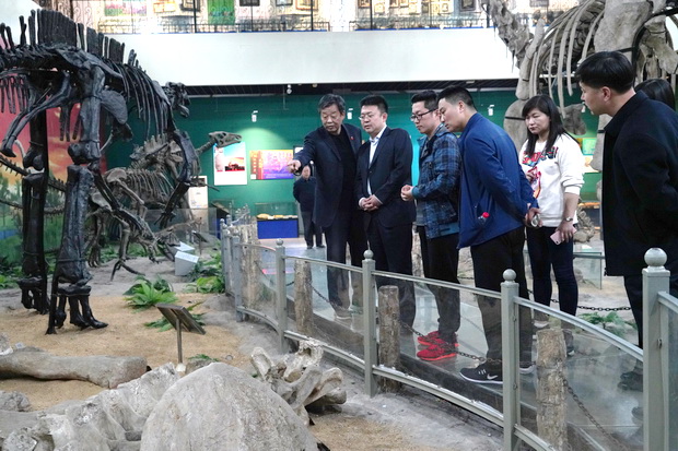 景临部长参观地球科学博物馆镇馆之宝“不寻常华北龙”化石