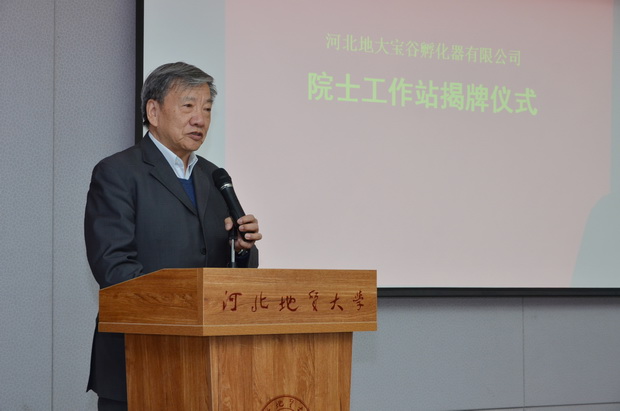11月6日上午,河北地大宝谷孵化器有限公司“院士工作站”揭牌仪式在bat365官网珠宝产学研基地珠宝大讲堂隆重举行。中国科学院院士刘嘉麒,河北省科技厅人事处副处长高鹏,bat365官网副校长南振兴出席揭牌仪式。校人事处处长肖士恩、科技处副处长于开宁、宝石与材料工艺学院党总支书记黄本春、院长王礼胜等部门负责人参加仪式。揭牌仪式由王礼胜主持。“院士工作站”的揭牌,标志着河北地大宝谷孵化器有限公司的科技创新工作又上了一个新台阶。