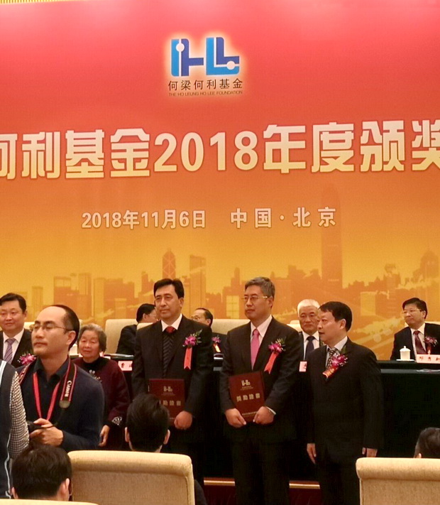何梁何利基金2018年度颁奖大会11月6日在北京钓鱼台国宾馆举行。全国人大常委会副委员长曹建明,全国政协副主席、中国科协主席万钢,科技部部长、党组书记王志刚出席大会并讲话,十一届全国人大常委会副委员长桑国卫,科技部副部长黄卫,教育部副部长朱之文,中央军委科技委副主任辛毅,国防科工局副局长张建华,中国科学院副院长张涛,中国工程院副院长邓秀新,中国科协副主席、书记处书记孟庆海,国家自然科学基金委员会副主任张希等领导以及何梁何利基金捐资人代表何善衡慈善基金会有限公司代表何恩怀先生,何添基金有限公司代表何敬煊先生,伟伦基金有限公司代表梁祥彪先生出席大会为获奖科学家颁奖。