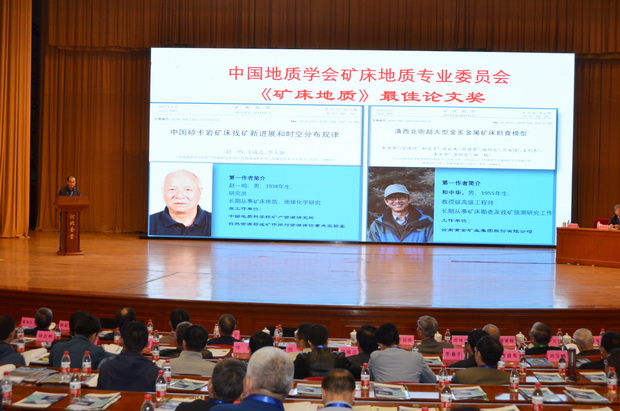 会议首次颁发了中国地质学会矿床地质专业委员会终身成就奖和《矿床地质》最佳论文奖。本次终身成就奖授予了中国科学院院士翟裕生和中国工程院院士陈毓川。以中国地质科学院矿产资源研究所赵一鸣研究员为第一作者的《中国矽卡岩矿床找矿新进展和时空分布规律》,以云南黄金矿业集团股份有限公司和中华教授级高级工程师为第一作者的《滇西北衙超大型金多金属矿床勘查模型》两篇论文荣获《矿床地质》最佳论文奖。