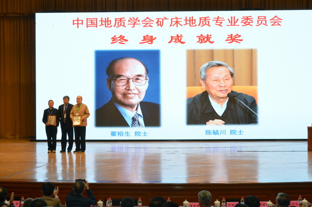 中国科学院院士翟裕生和中国工程院院士陈毓川获得终身成就奖