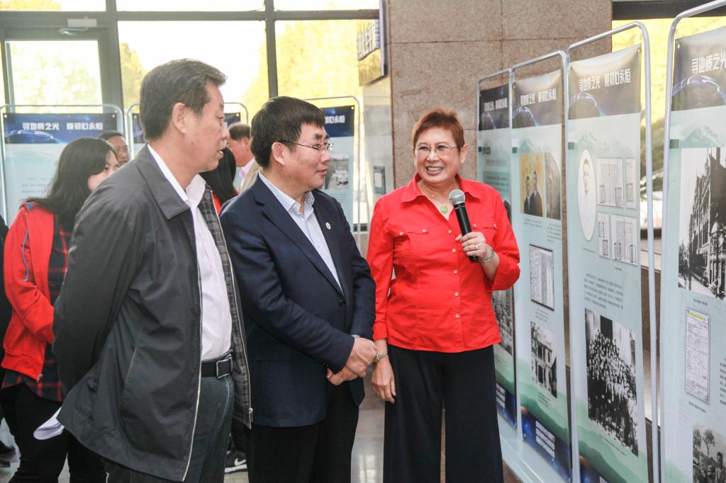 邹宗平女士就李四光的爱国主义和科学创新精神发表讲话,呼吁大家热爱祖国,努力向学,蔚为国用。邹宗平女士还亲自为到场领导、师生讲解了“李四光生平展”展览内容。参观者通过聆听和观展深刻感受到了李四光先生矢志不渝的爱国情怀,全面深入地了解了李四光先生一生的光辉足迹、卓越贡献和科学探索精神。