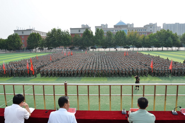 9月13日上午,2018级新生军训汇演在北校区隆重举行。校领导、军训教官代表、相关职能部门和各学院的负责人在主席台就坐,汇演由副校长侯书文主持。