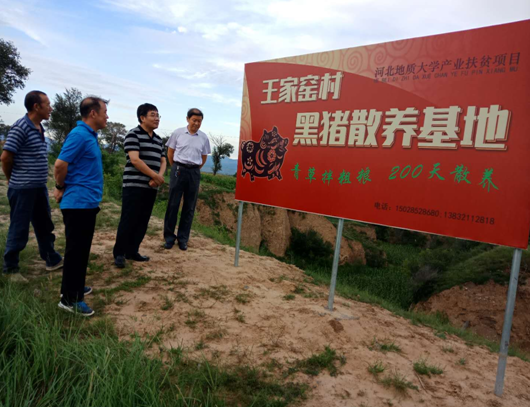 在王家窑村调研产业扶贫项目“黑猪散养基地”