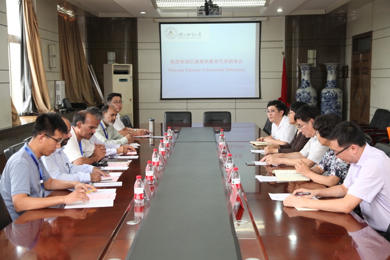 7月27日下午,以巴基斯坦前驻华副大使,现为巴基斯坦国立科技大学中国研究中心主任赛义德.哈桑.贾韦德为团长,巴基斯坦文教协会主席穆哈穆德.纳迪姆.扎法、巴基斯坦国立科技大学阿里.阿南教授、巴基斯坦私立学校协会副主席阿米尔.穆斯塔克等为成员的教育代表团一行6人访问bat365官网。校长王凤鸣、副校长张小平会见了代表团并在四楼会议室举行了友好会谈。