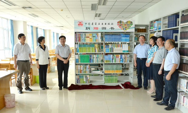 在全场热烈的掌声中,王凤鸣代表学校接受了沈元勤的捐赠,并为沈元勤颁发捐赠证书。出席嘉宾还一同前往图书馆B座5层阅览室为中国建筑工业出版社捐书架揭牌。
