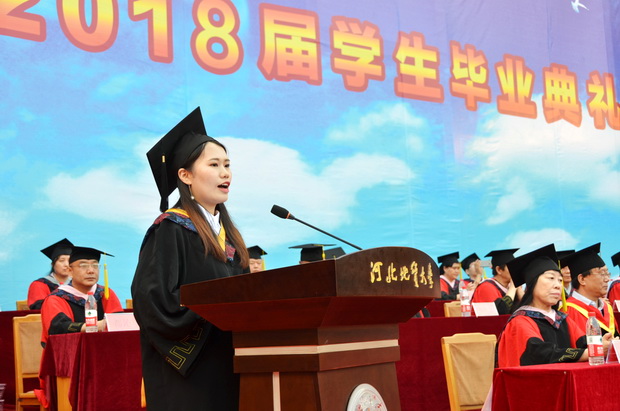本科毕业生代表、水资源与环境学院黄湘玲同学发言,回忆了在学校生活的点点滴滴,表示将带着母校“达观博物”的精神,带着师长的殷殷叮咛和拳拳嘱托,带着四年间在这里学到的知识和培养的气质,走向新的学校继续学习,走向新的岗位努力工作,走向新的阶段继续奋斗!