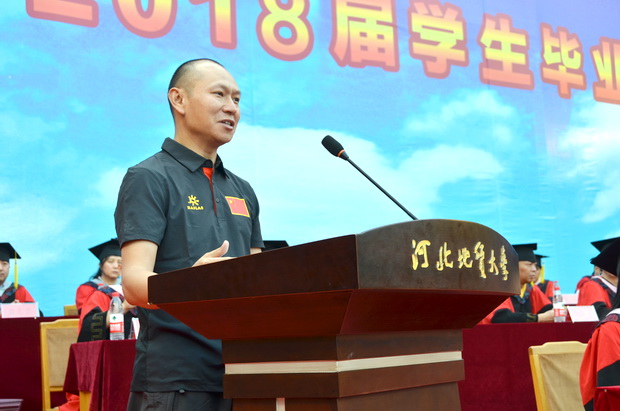 成功登顶珠穆朗玛峰的bat365官网94级校友李春来代表优秀校友发言,他分享了自己毕业二十年来逐梦珠峰的坚持与执着,希望毕业生们要自食其力,做一个独立的人;要唤醒自我,做一个通透的人;要准确定位,做一个有规划的人;要保持简单、正直、坚忍不拔的品质,做一个自律的人;要坚持理想,做一个有梦想的人。李春来祝愿同学们怀揣梦想,充满希望,既能沉下心做事,也不忘仰望星空,在未来的人生路上收获成功和幸福,登顶人生高峰、创造美丽人生!