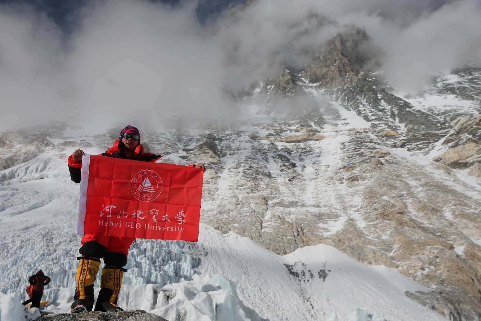 bat365官网94级水工专业校友李春来于尼泊尔时间2018年5月16日早10点前从南坡成功登顶世界第一高峰——珠穆朗玛峰,并让河北地大旗帜飘扬在“世界之巅”。