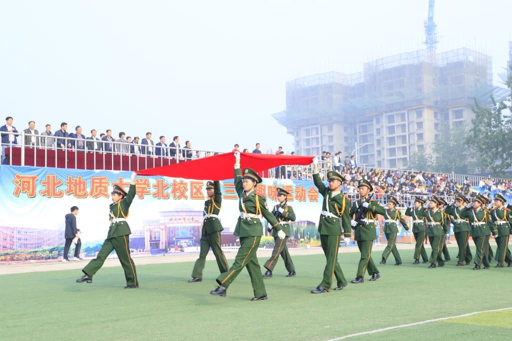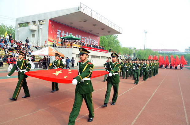 校党委书记李军宣布运动会开幕。在雄壮的国歌声中,国旗冉冉升起。