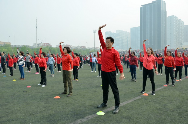 开幕式上,师生表演八段锦