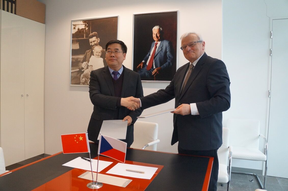 王凤鸣校长与捷克托马斯.巴塔大学校长皮特.萨哈签署合作协议