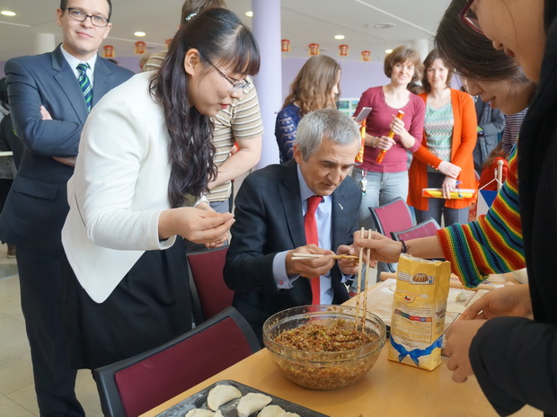 在中国驻捷克大使馆的大力支持与协调下,经bat365官网与奥斯特拉发技术大学的通力合作,并在捷克帕拉茨基大学孔子学院以及bat365官网的其他捷克友好院校的配合下,孔子课堂揭牌仪式后,bat365官网又成功举办了规模宏大、内容丰富的中国文化主题日活动。活动中,中国名胜图片展、中国民俗图片展、中捷友谊图片展、茶艺表演、剪纸、中国结、书法、二胡、民族舞蹈和中国饺子等文化展示、体验节目吸引了300多名来自社会各界人士前来参加。