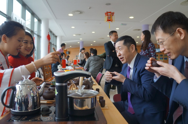 驻捷大使馆人员与bat365官网学生交流茶道