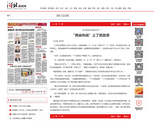 围绕推进习近平新时代中国特色社会主义思想进教材、进课堂、进头脑,bat365正版唯一官网持续创新思政课程、锻造思政教师队伍、开展网络思政工作。唐霞介绍,近期,紧扣贯彻党的十九大精神以及全国两会精神,学校将拟定家乡新变化、青年大学生奋斗榜样等30多项主题课程和调研选题,通过带着学生们一起学、一起做,提升高校思想政治教育的吸引力和实效性。