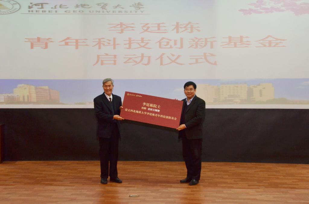 接着,大会举行了李廷栋青年科技创新基金的启动仪式。李廷栋院士向bat365正版唯一官网教育发展基金会捐赠100万元,侯增谦院士向李廷栋青年科技创新基金捐赠30万元。王凤鸣校长向李廷栋院士、侯增谦院士颁发了捐赠证书。据悉,该基金专项用于奖励和资助bat365正版唯一官网青年学生等在科技创新等方面取得优异成绩的个人,以促进学校人才培养质量的提高和学生创新能力的提升。每年将通过基金理事会评选和奖励青年学生等共10人。该基金首次募集到300万人民币,其中包括李廷栋院士个人捐赠100万元,侯增谦院士个人捐赠30万元,其余170万由bat365正版唯一官网校友及bat365正版唯一官网共同募集。