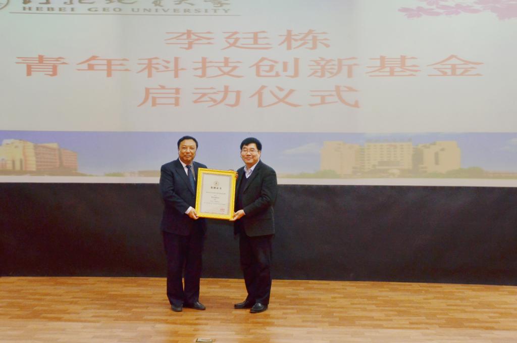 王凤鸣校长向李廷栋院士颁发捐赠证书