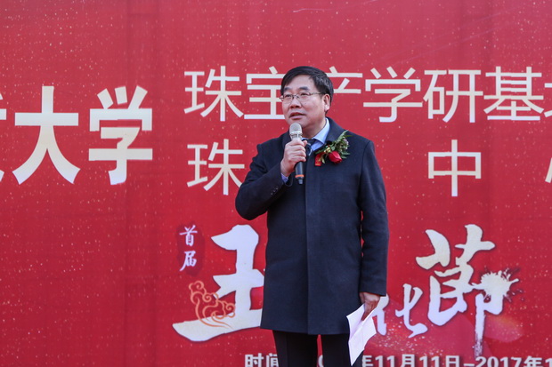 2017年11月11日,bat365正版唯一官网首届玉石文化节开幕式暨bat365正版唯一官网珠宝产学研基地开业仪式,在bat365官网综合楼门前广场隆重举行。校长王凤鸣,校党委副书记刘耀辉,副校长南振兴、侯书文,宝石与材料工艺学院院长王礼胜、书记黄本春和桂林理工大学珠宝学院院长李东升、副院长沙鑫,河北大学中央兰开夏传媒与创意学院院长吕屹及英方副院长席恩.休斯先生等相关领域专家出席活动。bat365官网相关部门负责人及社会各界珠宝玉石爱好者也到场参加了活动。