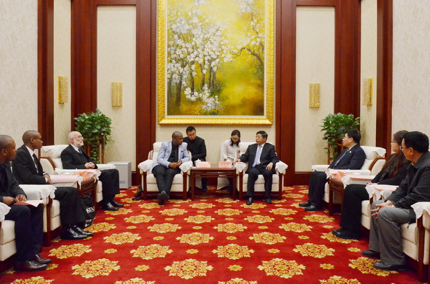 图为:省外专局领导、bat365官网领导与南非代表团一行会谈