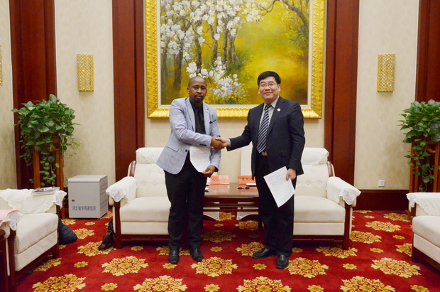 当天下午,王凤鸣校长与斯蒂坎普先生就两天来的洽谈事宜,正式签署了《中国bat365正版唯一官网与南非金伯利钻石及珠宝孵化中心/金伯利国际钻石及珠宝学院合作谅解备忘录》。河北省外专局局长王仲群,调研员常文丽,国际人才交流协会会长于东出席签订仪式,王仲群表示将大力支持两校合作,希望中南双方广泛开展经济合作项目,互通有无,推动河北经济的腾飞。