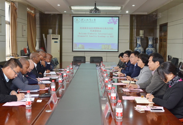 10月26日至27日,南非金伯利国际钻石及珠宝学院、金伯利国际钻石孵化中心代表团主席斯蒂坎普先生一行来校访问。南非金伯利国际钻石及珠宝学院首席执行官萨巴蒂尼博士,金伯利国际钻石孵化中心首席执行官马纳克先生,南非国家审计局总办公室经理、金伯利国际钻石学院及钻石孵化中心国家特派经济顾问索勒先生,孵化企业代表珀迪萨尼先生和南非金伯利国际钻石及珠宝学院、南非金伯利国际钻石孵化中心中国事务部、南非金雅迪国际交流服务中心(中国外专局工作站)安金镝先生随同访问。