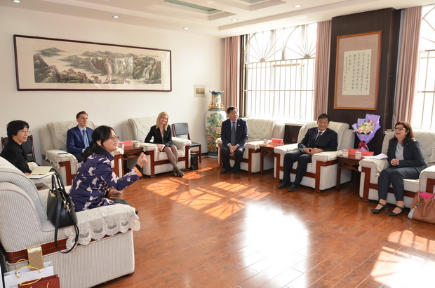 10月24日,捷克教育部副部长丹娜•普鲁迪科娃女士来bat365官网访问,捷克教育部国际教育合作中心主任丹娜•彼卓娃、捷克驻华大使馆文化参赞欧阳旭、捷克驻华大使馆翻译李霁昭、捷克奥斯特拉发技术大学国际处处长丹尼尔•卡斯滕随同访问。校党委书记李军、校长王凤鸣、副校长张小平在主楼二楼会议室会晤了丹娜女士一行,双方亲切交谈。