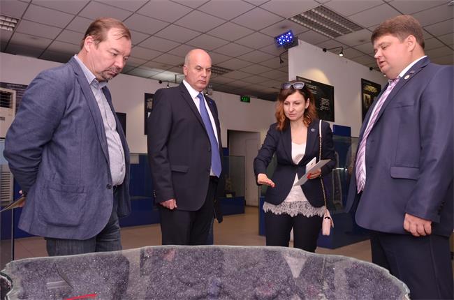 图为:俄方代表团参观地球科学博物馆