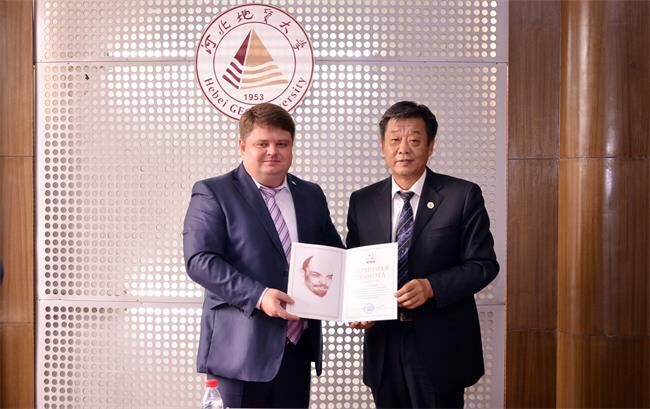 9月30日,俄罗斯国立地质勘探大学校长瓦迪姆.卡西亚诺夫、教育工作副校长弗拉基米尔.库利科夫、科学局局长柳德米拉.霍夫里娜一行访问bat365官网,与党委书记李军、副校长张小平和相关二级学院领导、老师洽谈合作交流项目。