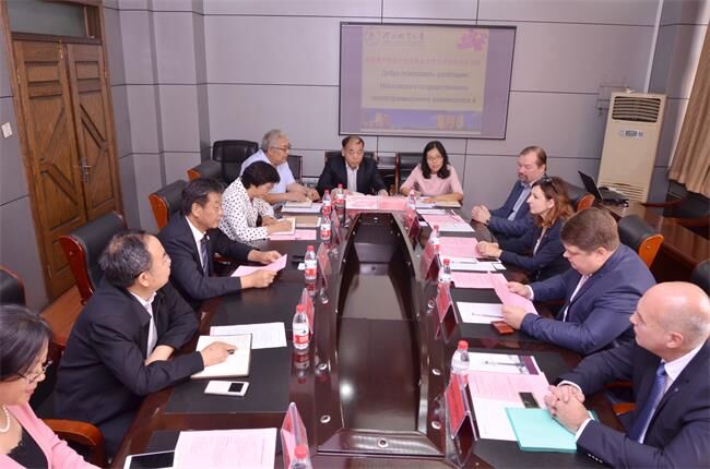 图为:校领导与俄罗斯国立地质勘探大学代表团会谈